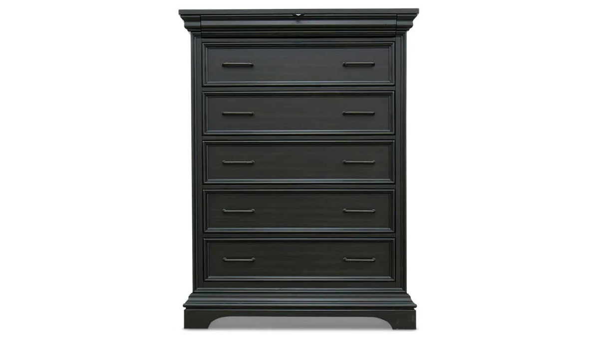 Experience luxury and refinement with the Caden bedroom collection, where every detail exudes opulence and timeless appeal, transforming your bedroom into a sanctuary fit for royalty. Crafted with the finest pine solids adorned with an opulent Acacia veneer, each piece radiates grandeur and enduring charm. The centerpiece of this collection is the bed, featuring a strikingly tall headboard and majestic footboard with discreet storage, offering both style and functionality. Meticulously crafted drawers showcase French and English dovetail construction, ensuring durability and refinement, while the ball-bearing glide systems provide smooth and effortless operation. Embrace the regal ambiance with the addition of nightstands boasting a power pack and LED nightlight, seamlessly blending modern convenience with traditional allure. Our Caden bedroom collection is a regal testament to timeless elegance and classic sophistication.Read More