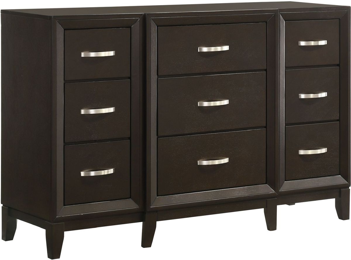 A Sleek and beautiful dresser with simple design that will complement any bedroom. Nine drawers provide extra storage for personal belongings to be put away and secured. Place it anywhere in the room to add that extra layer of tidiness and organization in a contemporary style.Read More