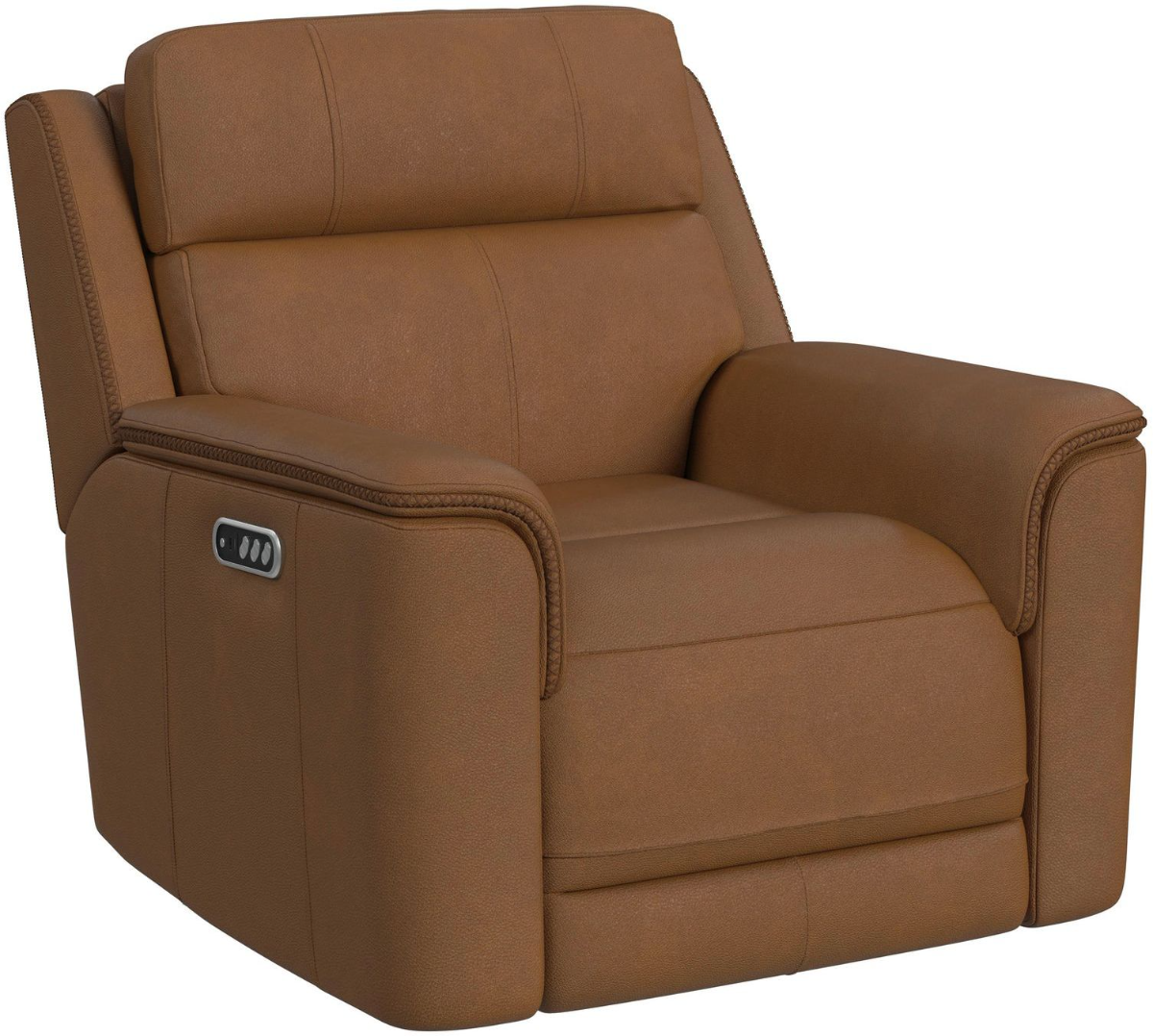 The Mustang Power Motion Recliner outfits your living space with unmatched comfort. Fully upholstered in 100% top-grain leather and amply padded with soft foam cushioning, this piece is designed to elevate your moments of repose. Power recline, headrest, and lumbar function combine to enhance comfort, while an integrated controller with a USB port adds modern convenience. Minimal decorative tufting and stitchwork add refined stylistic elements, perfectly complementing the understated, timeless design. For a comfortable and durable addition to your living space, choose the Mustang Power Motion Recliner.