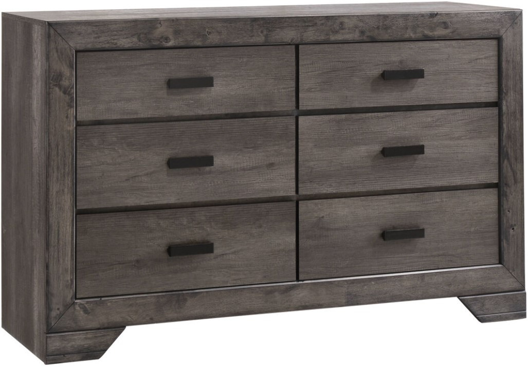 Bring modern rustic charm to your bedroom with the Nathan dresser. Featuring a weathered gray oak finish, clean lines, and sleek metal hardware, this dresser offers both style and storage. With multiple spacious drawers, it's perfect for keeping clothes, linens, and accessories neatly organized and easily accessible.Read More