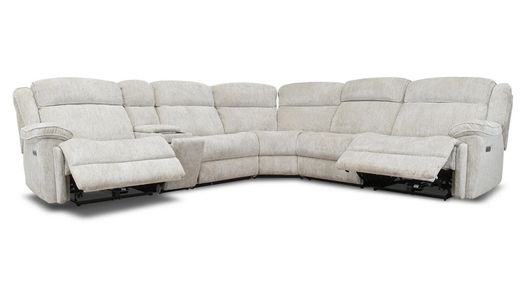 As practical as it is stylish, our Elena power reclining modular sectional features great details from top to bottom. Crafted with meticulous attention to detail, this sectional is constructed using high-quality materials with a sturdy frame to ensure durability and longevity. It is upholstered in a soft chenille fabric making it easy to maintain and clean. The power reclining mechanism allows you to easily adjust the position of the seat to your desired level of comfort. Our Elena collection takes functionality to a new level with a console that features a wireless charging station, hidden cup holders, and a storage compartment. These features allow you to comfortably work or enjoy entertainment while keeping your devices powered and your living room tidy. The modular design of the sectional allows you to build it to any size or shape you want to ensure it fits your space. With its modular design, convenient console with storage, and adjustable reclining positions, our Elena power reclining modular sectional is designed to provide you and your family with the ultimate lounging experience! Available in beige and charcoal grey.Read More