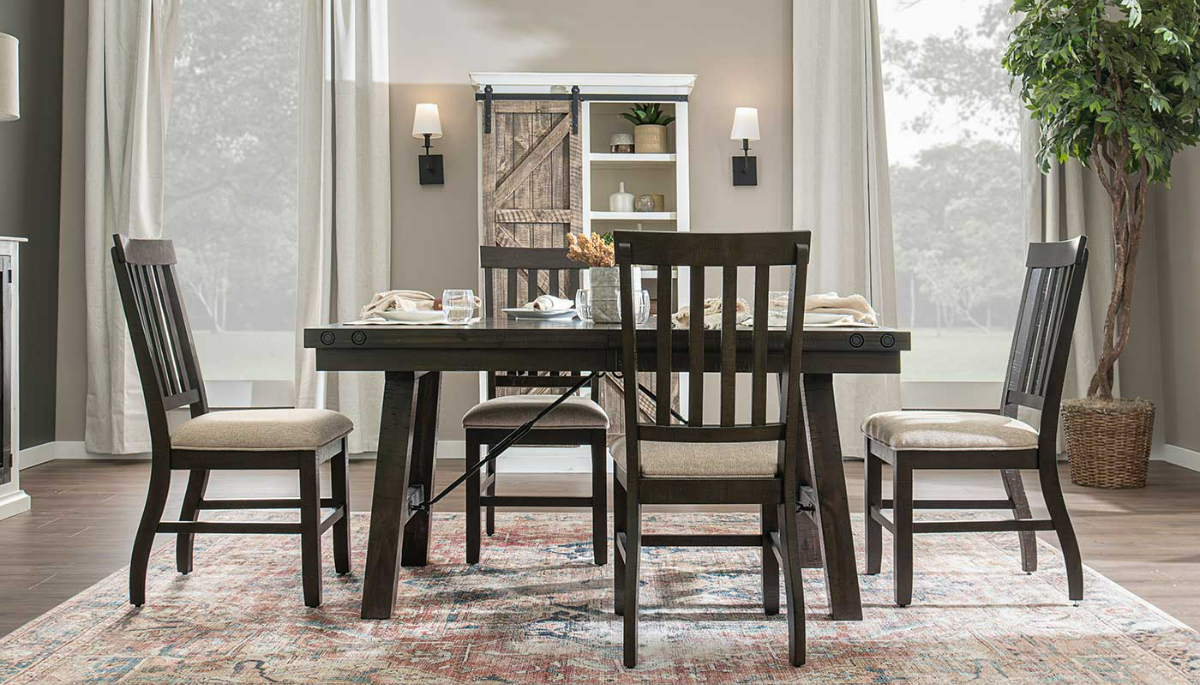 Old world beauty meets new world charm in my timeless Indy collection. Made from 6mm solid Acacia laid over a substructure with Rubberwood accents and other Acacia solids. Repurposed into beautiful furniture, each piece is unique to itself. Built for the most discerning consumer this table features a built-in leaf. The length can be adjusted from 60″ to 78". The table is also double gear driven for ease of operation. The chairs are solid Rubberwood, and underneath the table, the look is completed with Iron a stretcher. The Parsons chairs are upholstered in a beautiful chenille fabric but don't worry, it is 100% polyester so they are very family-friendly.Read More