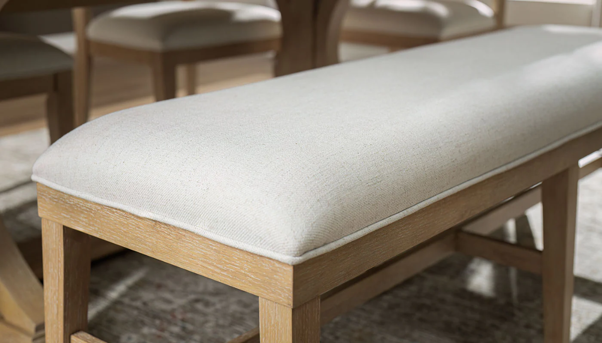 Elevate your dining space with the timeless charm of our Tessa dining collection. The dining bench is expertly crafted from solid Rubberwood and finished in a brushed light oak veneer and covered a light linen fabric seat, offering a soft, natural look that complements any décor. Tessa is where casual elegance meets everyday functionality.Read More