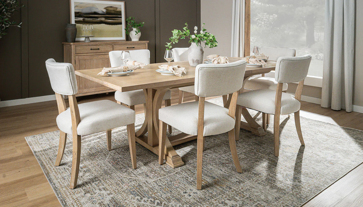 Elevate your dining space with the timeless charm of our Tessa dining collection. The dining chair is expertly crafted from solid Rubberwood and finished in a brushed light oak veneer and covered a light linen fabric seat, offering a soft, natural look that complements any décor. Tessa is where casual elegance meets everyday functionality.Read More